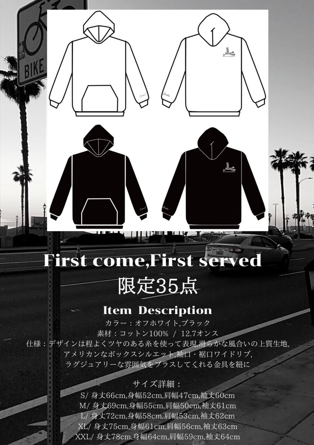 ※写真のハットありがXL,ハットなしがLを着用