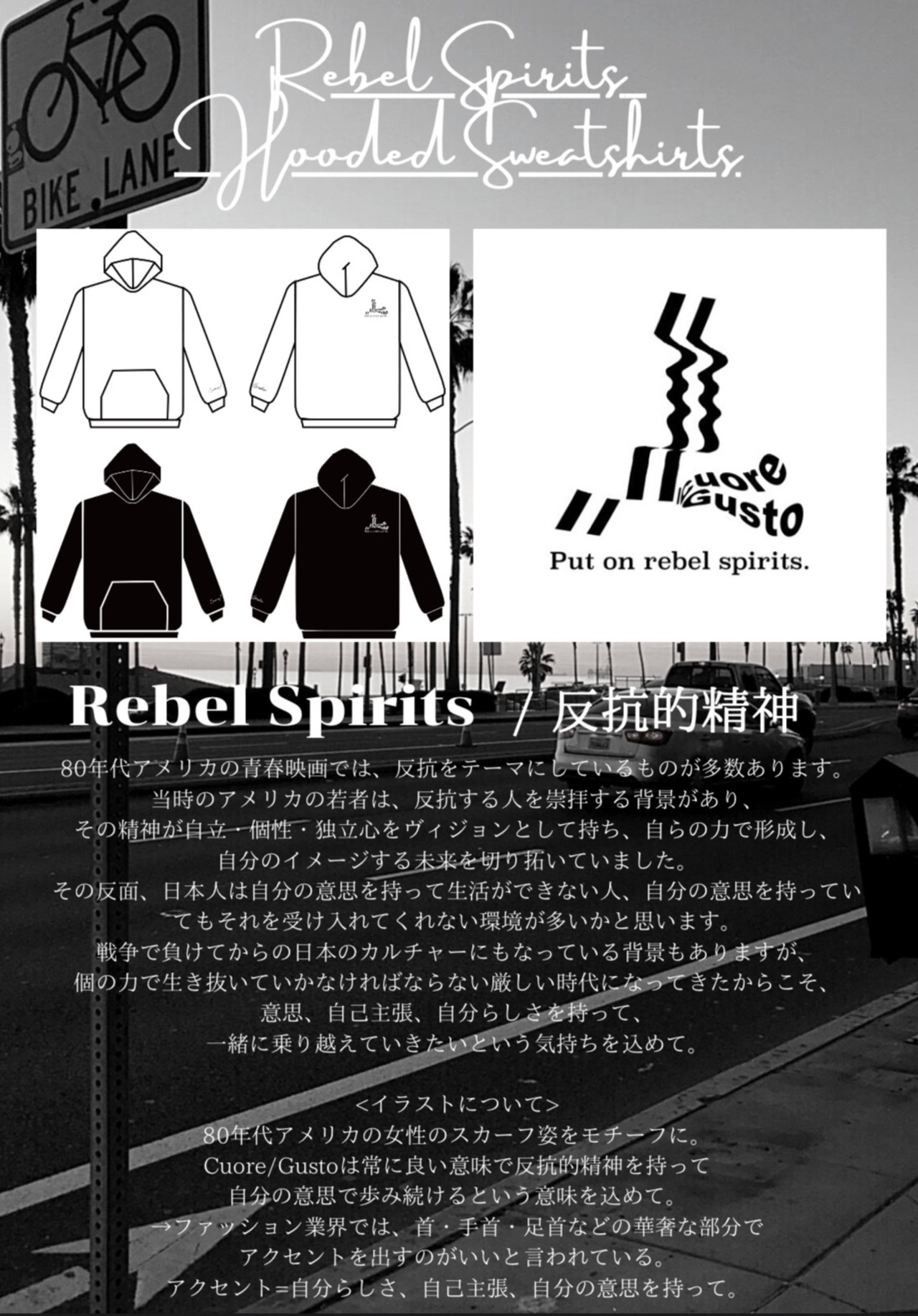 Cuore/Gustoは常に良い意味での反抗的精神を持って自分の意思で歩み続けるという意味を込めて。