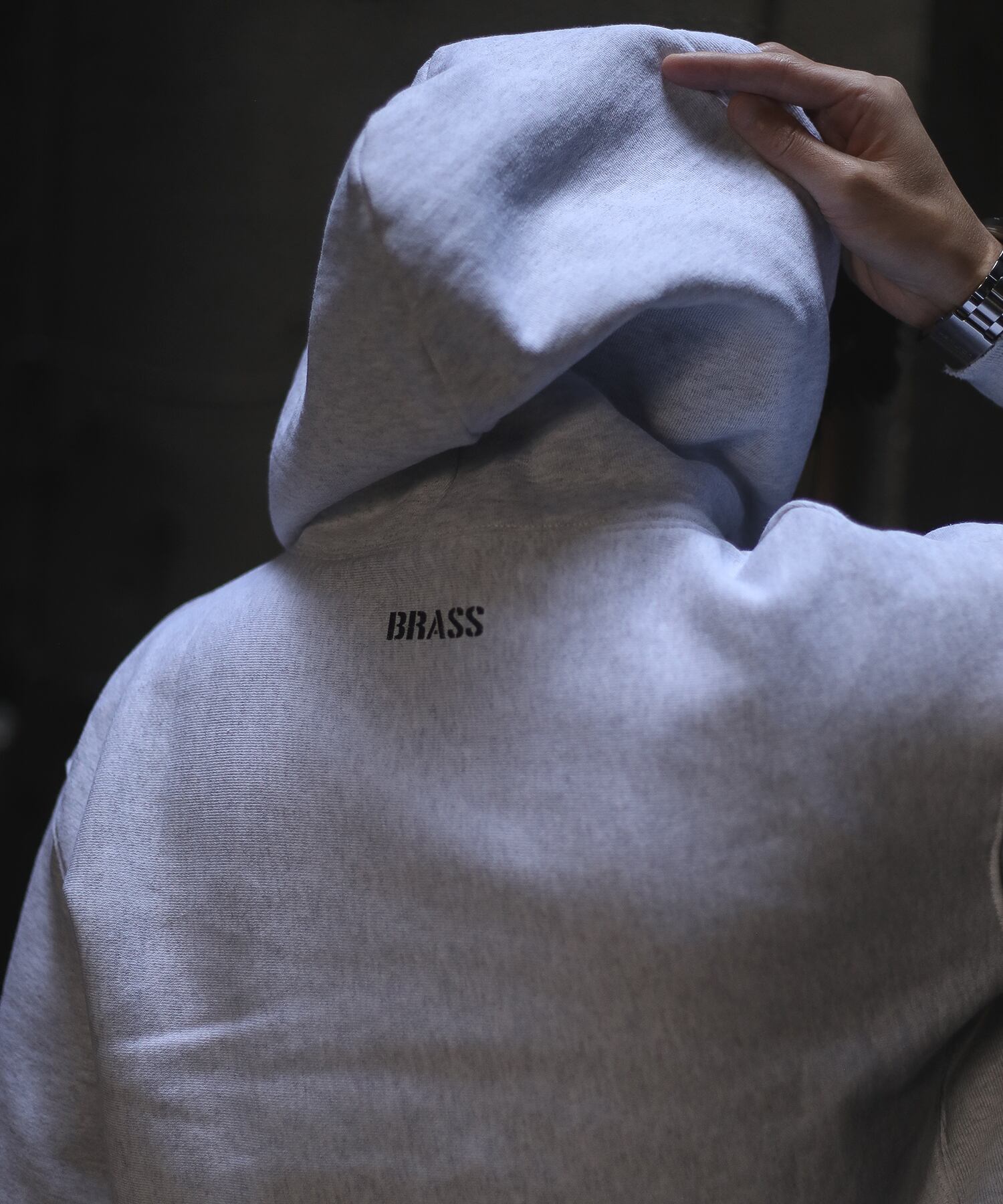あえて見えにくいフード下に、磨けば輝く「BRASS」を。